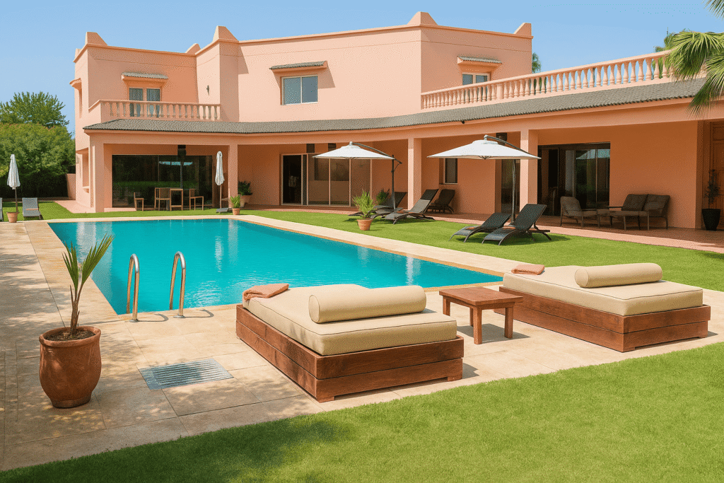 Entre authenticité marocaine et confort moderne, notre villa avec piscine vous accueille pour un séjour inoubliable à Marrakech.