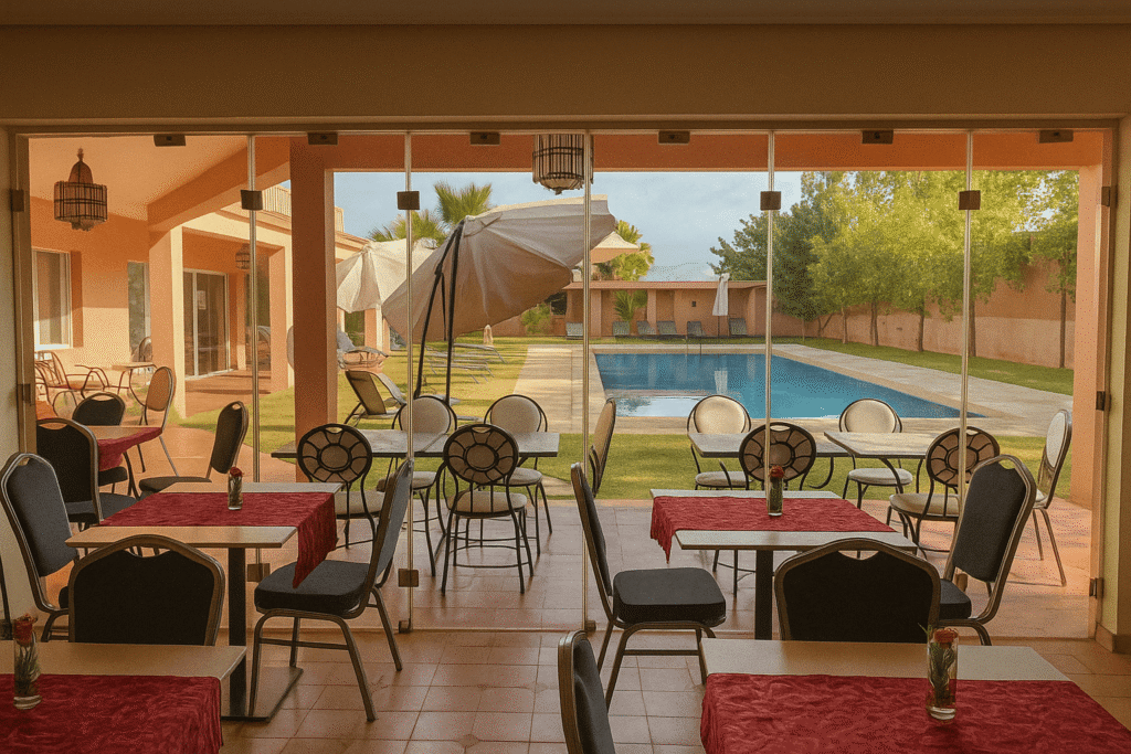 Profitez de notre grande piscine, nichée au cœur d’un jardin verdoyant. Transats, parasols et coins ombragés vous offrent tout le confort nécessaire pour vous relaxer sous le soleil de Marrakech, dans une ambiance calme et apaisante.